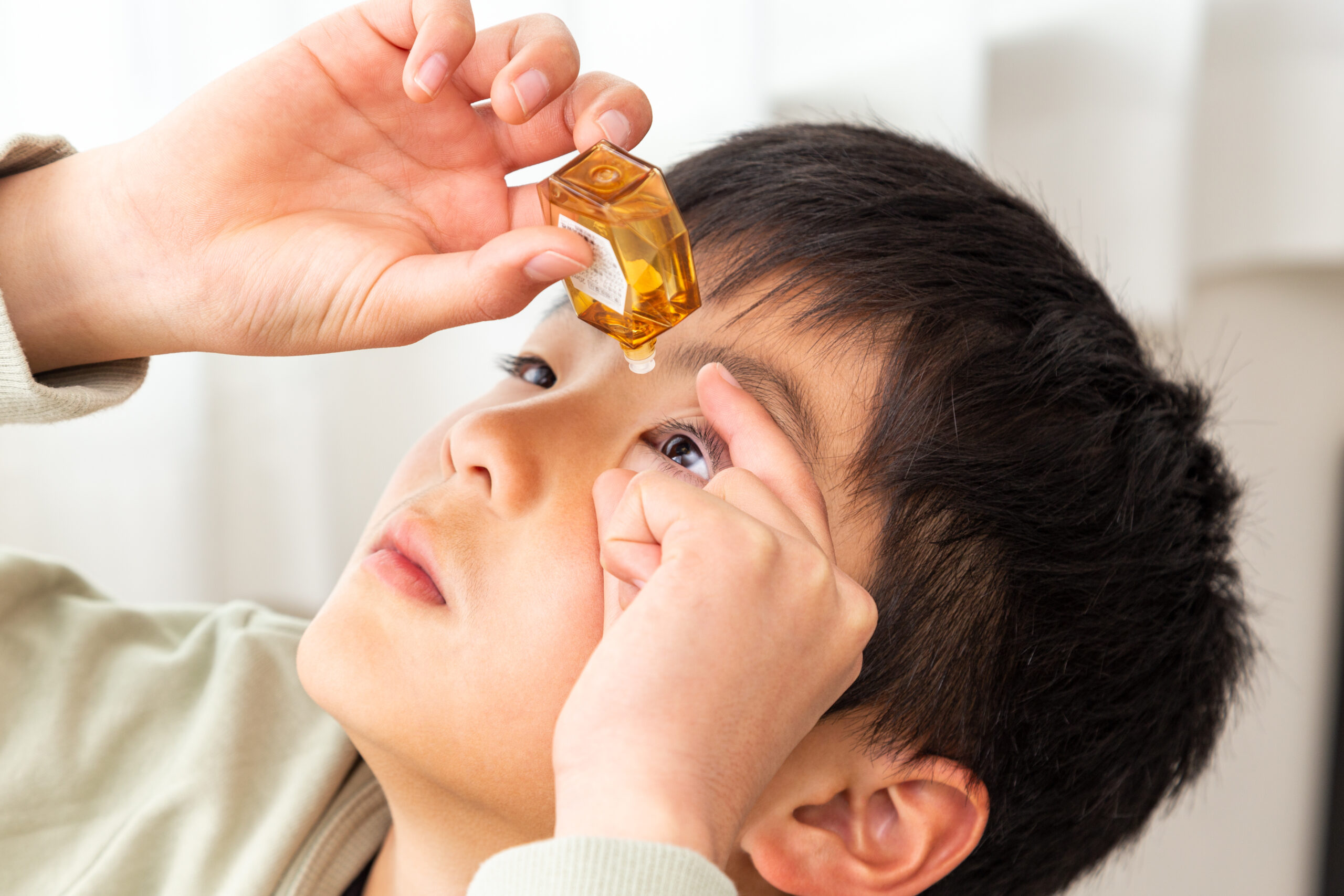 目薬をさす男の子